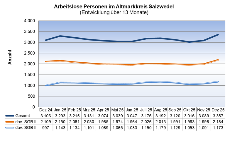 Anzahl der arbeitslosen Personen im Jahresverlauf Dezember 2024 bis Dezember 2025 im Altmarkkreis Salzwedel