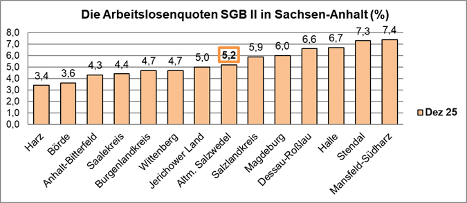 Die Arbeitslosenquoten Rechtskreis SGB II in Sachsen-Anhalt in %, Stand Dezember 2025