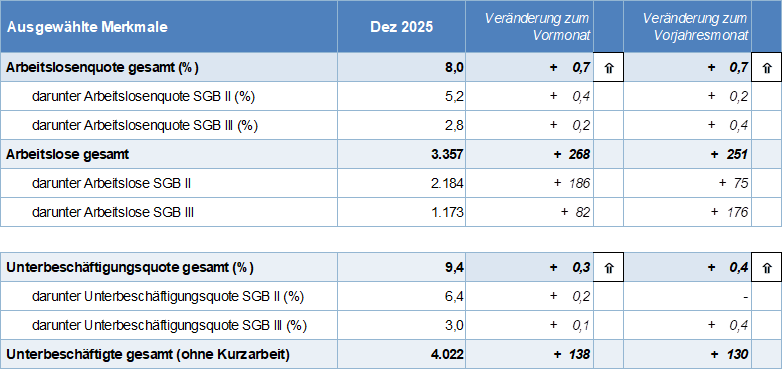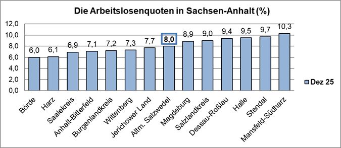 Die Arbeitslosenquoten (Rechtskreise SGB II und SGB III) in Sachsen-Anhalt in %, Stand Dezember 2025